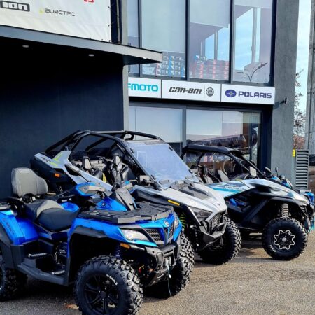 CFMOTO CForce 450L este cel mai accesibil ATV cu 2 locuri din line-up-ul CFMOTO, marca recunoscuta la nivel international pentru produsele sale foarte performante, oferite la preturi avantajoase. Modelul este foarte usor de pilotat si manevrat multumita sistemului de transmisie automata CVT cu tractiune selectabila 2WD/4WD si prin echiparea cu suspensii independente cu brate duble, optimizate pentru off road. Performantele notabile de care acest ATV 4×4 este capabil sunt facilitate de motorul compact si eficient de 400cc 32cp, cu 1 cilindru in 4 timpi, iar puterea este complementata excelent de designul modern si atractiv, cu multiple optiuni de culoare. In concluzie, CFMOTO CForce 450L este un ATV 400cc robust si de incredere, fiabil, cu costuri reduse de intretinere, recomandat pasionatilor de off road sau celor care cauta un partener de lucru.