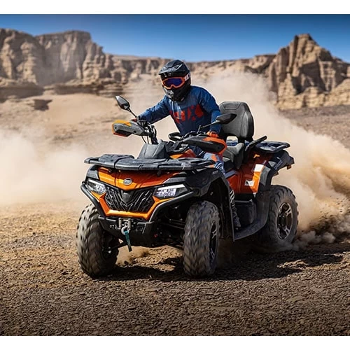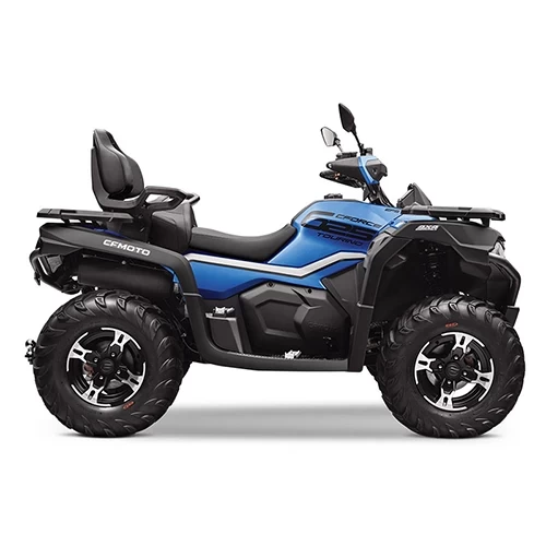 CFMOTO CForce 600L Touring este unul dintre cele mai noi ATV-uri CFMOTO, un ATV categoria 600cc puternic si fiabil, gata sa depaseasca cele mai dure trasee off road. CForce 600L Touring se impune prin motorul puternic de 580cc, 45 cai putere, cutia de viteze automata de inalta performanta si eficienta, suspensiile moderne, optimizate, cu brat dublu tip A si franele hidraulice care asigura un control optim. Pachetul standard cuprinde toate echipamentele si accesoriile pentru cea mai buna experienta de off road riding.